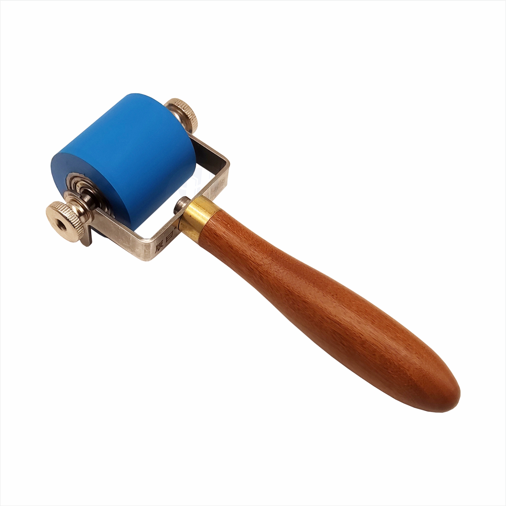| "版曰"檀木手柄墨滾 適應專業(yè)級版畫印刷的專業(yè)型工具,膠層表面光滑平整,軸承轉動操作自如,上墨絲滑均勻。 50毫米系列墨滾配以檀木手柄握感舒適,不銹鋼支架設計可避免油墨與墨臺相粘,便于膠輥的長期存放。 可定制不同規(guī)格尺寸和硬度的墨滾。 |